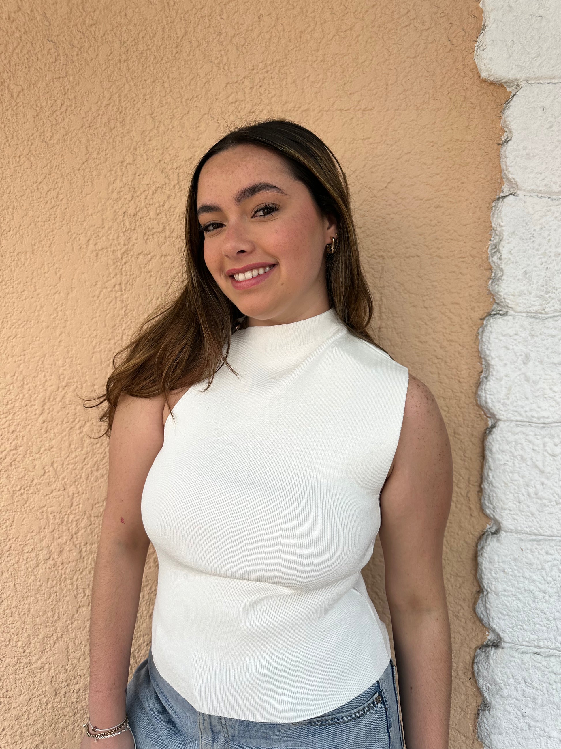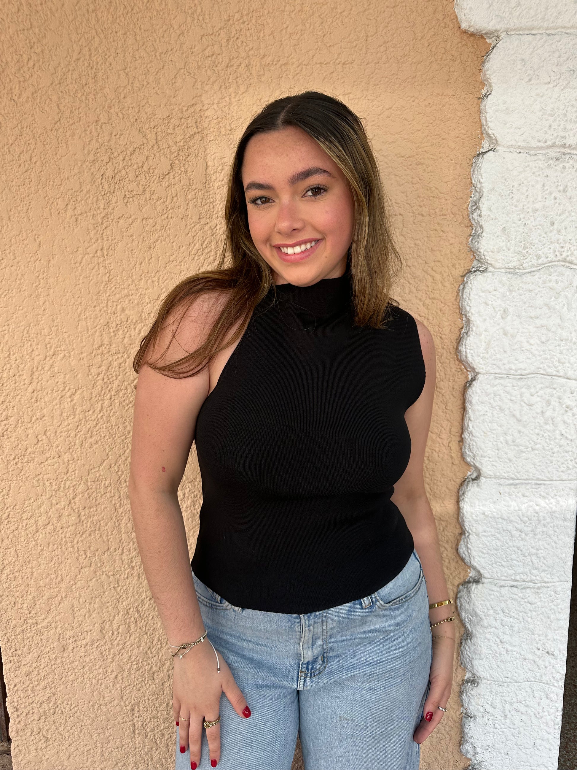 Knitted Asymmetrical With Mesh Side Top