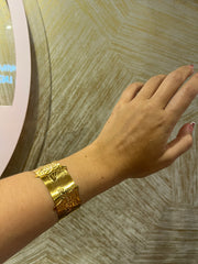 This 24K gold-plated brass cuff has been handcrafted in the designer workshop and hand polished for a smooth finish. Made in Spain. This cuff its light-weight materials.